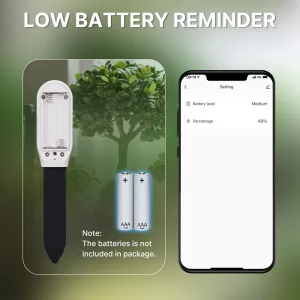 Senzorul de Sol Moes Smart Bluetooth monitorizează constant umiditatea și temperatura solului, oferindu-ți informații în timp real despre starea plantelor tale. Poți verifica aceste date oricând, direct de pe telefon, și poți ajusta irigarea în funcție de nevoile exacte ale plantelor tale.