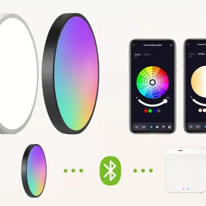 Plafoniera inteligentă Gosund LB13 oferă iluminare multicoloră RGB+CW și control complet prin Bluetooth, telecomandă sau aplicație mobilă. Pentru control de la distanță (din afara razei Bluetooth de 10m), este necesar un hub Bluetooth compatibil.