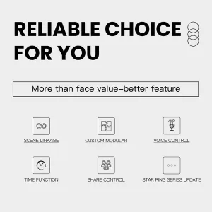 Designul premium include un inel LED Star Ring, care adaugă un aspect modern și îți permite să localizezi comutatorul chiar și pe întuneric. Poți ajusta luminile în funcție de preferințe, seta temporizatoare și programe automate pentru o experiență cât mai confortabilă.